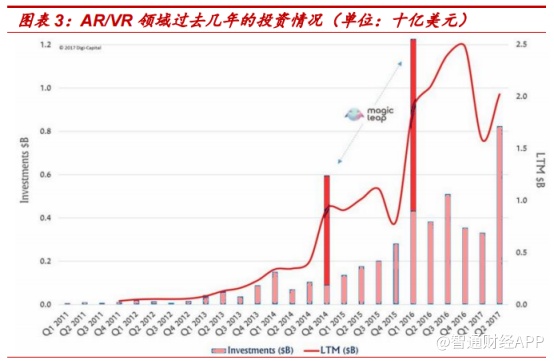 而近年来国内AR产业的高速发展,资本助推不可或缺。Digi-Capital统计数据显示,AR/VR领域的投资额在2016年一季度达到峰值后曾出现一定回落,但经历短暂的平静后,2017年二季度便开始出现强势反弹,单季获得超8亿美元投资。