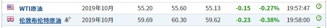 油价小幅下跌,截至发稿,WTI原油跌0.27%,报55.20美元/桶。布伦特原油跌0.38%,报59.69美元/桶。