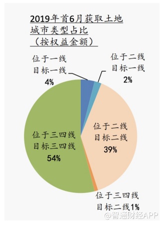 销售构成方面,公司上半年权益销售中,三四线销售占比61%,一二线销售占比39%;新增拿地权益金额中,三四线项目占权益总土地代价的54%,一二线项目则占46%。