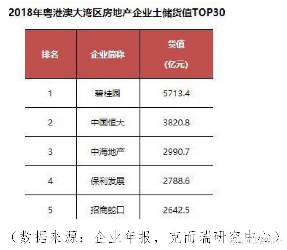 而据克而瑞统计,截至2018年底,碧桂园在粤港澳大湾区的土地储备超过5000万平方米,土储货值和土储建面均位居Top1,远超其他房企。