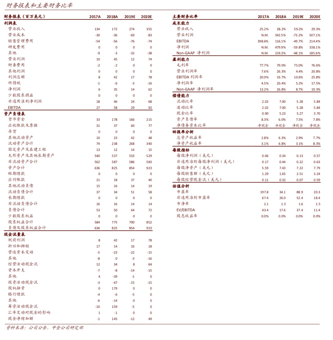 我们将2019年和2020年收入预期分别上调12%至2.74亿美元和至3.55亿美元。此外,我们将经调整净利润预期分别上调 4%和5%至 2400 万美元和 6800 万美元。当前股价对应 18 倍 2020 年非 通用会计准则市盈率。我们维持跑赢行业评级并将目标价格上调30%至 15 美元,主要考虑新项目变现,公司前景可观。目标价较当前股价有 31%的上行空间,对应 24 倍 2020 年非通用会计准则市盈率。