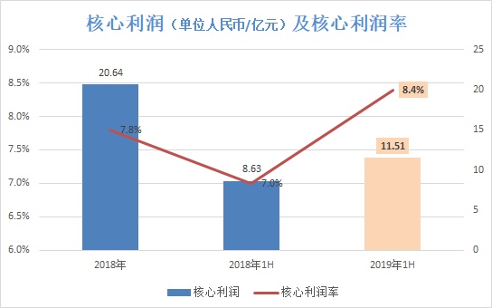 根据财报数据,正荣地产2019年上半年盈利能力稳健提升,归母净利润同比增长11.1%至9.33亿,净利润率由2018年同期的7.8%上升至8.6%;尤其在反应房企盈利能力得关键性指标——核心净利润更是同比增长33.4%至11.5亿,该增速在同等规模房企中居于前列。