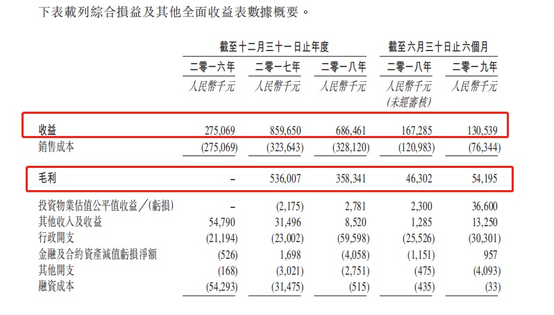 在确保万新集团地方政府客户取得有利的开发收益的同时,于截至2016年、2017及2018年12月31日止年度以及截至2019年6月30日止六个月,我们能够实现的收益分别约为人民币2.75亿亿元、人民币8.6亿元、人民币6.86亿元元及人民币1.31亿元。于2016年、2017年、2018年以及截至2018年及2019年6月30日止6个月,万新集团的毛利分别为零、人民币5.36亿元、人民币3.583亿元、人民币0.463亿元及人民币0.542亿元,而毛利率则分别为零、62.4%、52.2%、27.7%及41.5%。万新集团的毛利波动与收益波动一致。