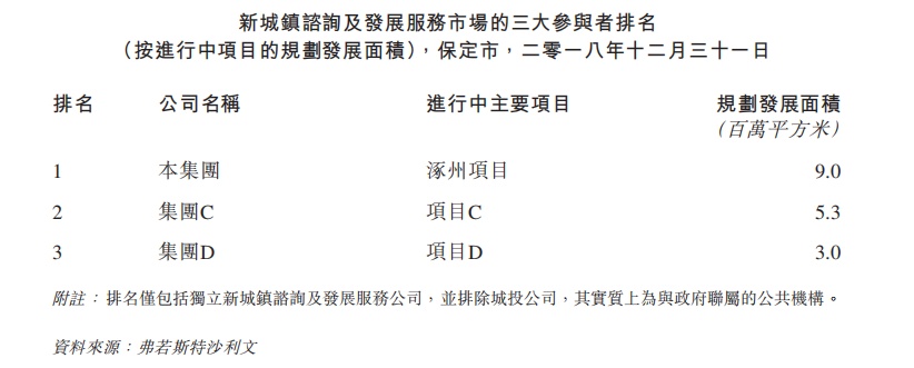 于保定,于2018年12月31日,按进行中项目的规划发展面积计,万新集团为最大的新城镇咨询及发展服务提供商。涿州项目的规划面积为9.05百万平方米,且其为在保定市发展的最大进行中新城镇发展项目。