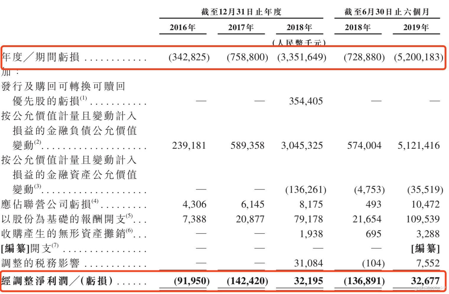 收入由截至2018年6月30日止六个月的人民币3.058亿元增加210 .3%至2019年同期的人民币9.49亿元。截至2018年及2019年6月30日止年度,分别亏损人民币7.289亿元及人民币52亿元。亏损由2017年的人民币7.588亿元增至2018年的人民币33.516亿元,以及由截至2018年6月30日止六个月的人民币7.289亿元增至截至2019年同期的人民币52亿元,主要是由于该公司优先股的公允价值变 动及持续的研发投资。