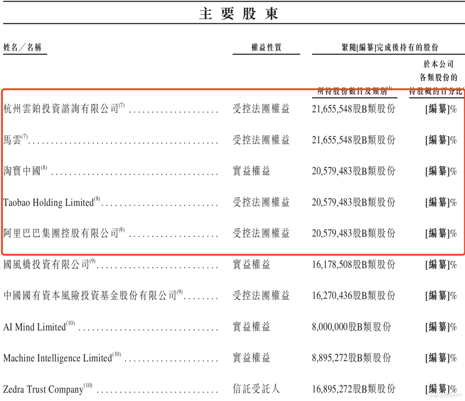 值得注意的是,在该公司的股东结构中,马云全资拥有的杭州云铂投资咨询有限公司、淘宝中国(根据证券及期货条例,Taobao Holding Limited(淘宝中国的唯一股东)及阿里巴巴集团控股有限公司(纽约 证券交易所上市公司,股份代号:BABA,为Taobao Holding Limited的唯一股东)均视为于淘宝中国所持B类股份中拥有权益。)均持有该公司的B类股份。
