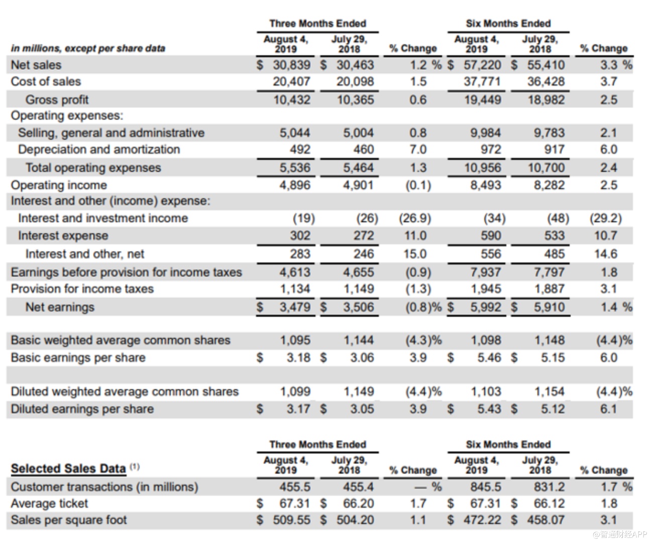 然而,宏观经济因素在最近一个季度对家得宝的装修业务没有任何特别的影响,并且该业务的客户交易量(+1.7%)和平均价格(+1.8%)均有所增长。公司能够在价格和数量的基础上增加销售额这一事实令人鼓舞,虽然这两个指标的增长率均低于2%,但分析师预计如果这一趋势持续,盈利将继续增长。