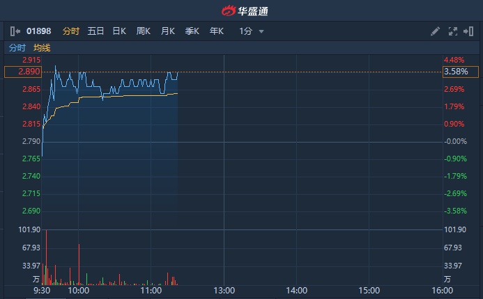 智通财经APP获悉,中煤能源(01898)公布2019年上半年业绩,上半年归属于上市公司股东的净利润约37.88亿元,同比增长39.8%。截至发稿,涨3.23%,报2.88港元,成交额2003.84万港元。
