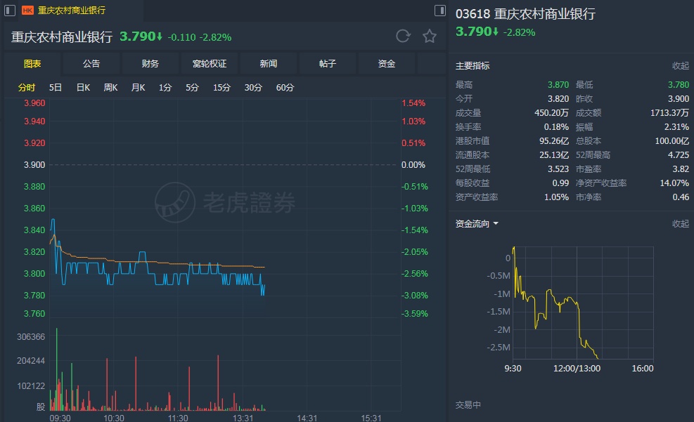 智通财经APP获悉,瑞银发表报告称,重农行(03618)上半年资产质素改善,录得个位数盈利增长,但低息环境开始对重农行净利息收益率造成压力,加上市场仍将关注地区性银行表现,预计投资者将维持审慎态度,故将其目标价,自4.8港元下调至4.2港元,维持“中性”评级。