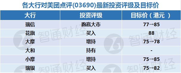 一、各大行对美团点评(03690)最新投资评级及目标价:
