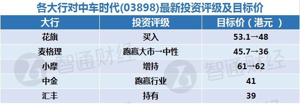 三、各大行对中车时代(03898)最新投资评级及目标价: