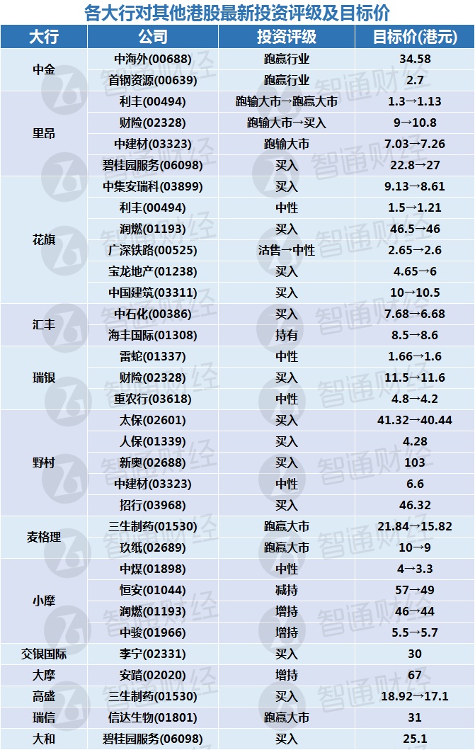 二、各大行对华晨(01114)最新投资评级及目标价:
