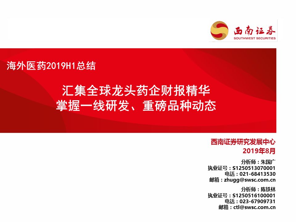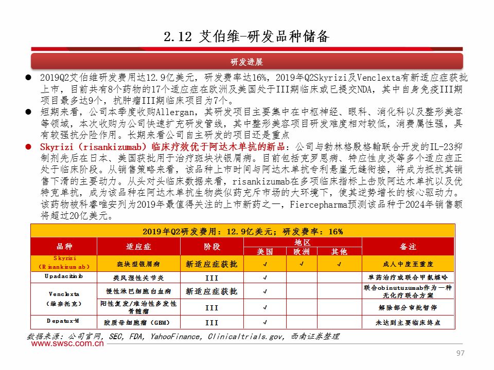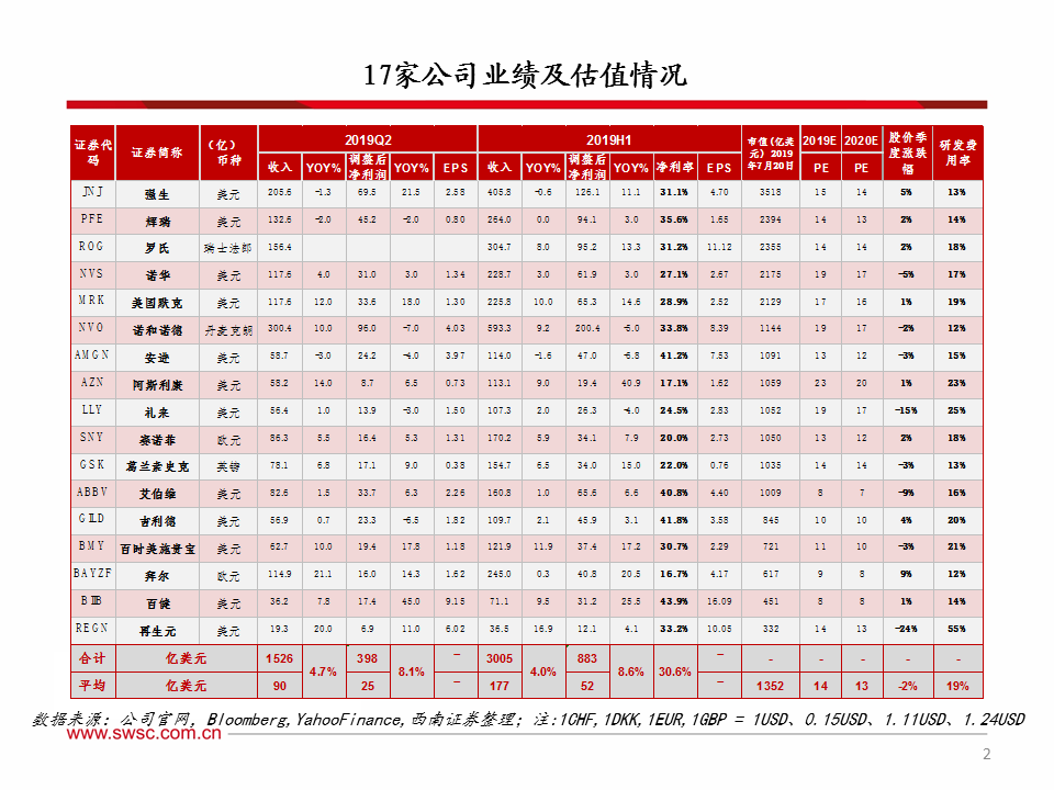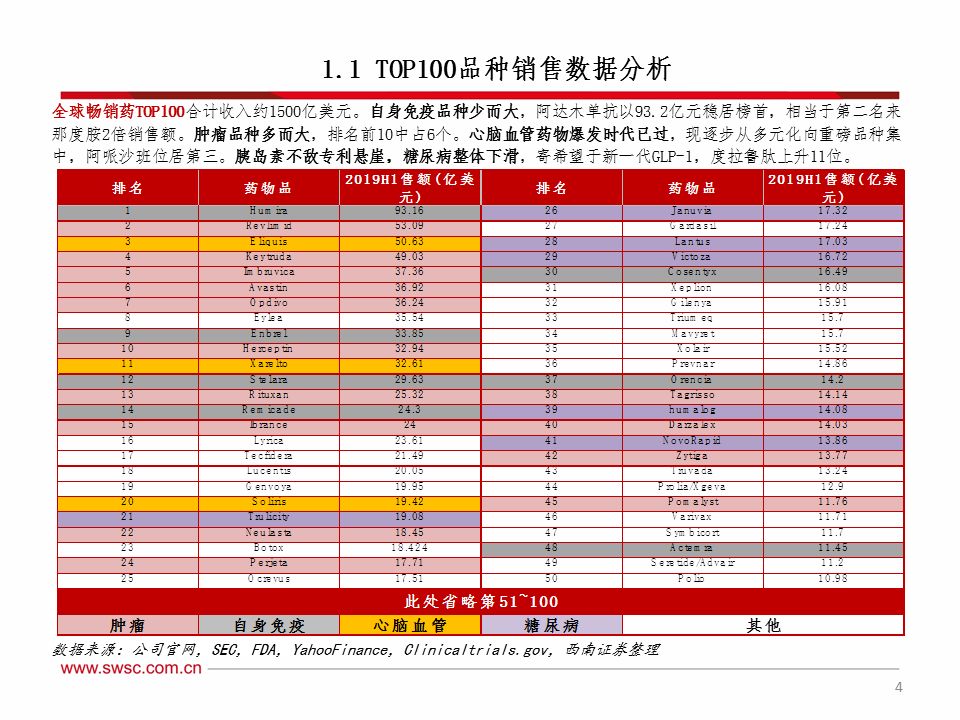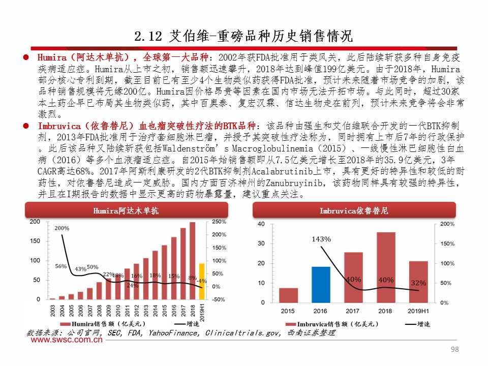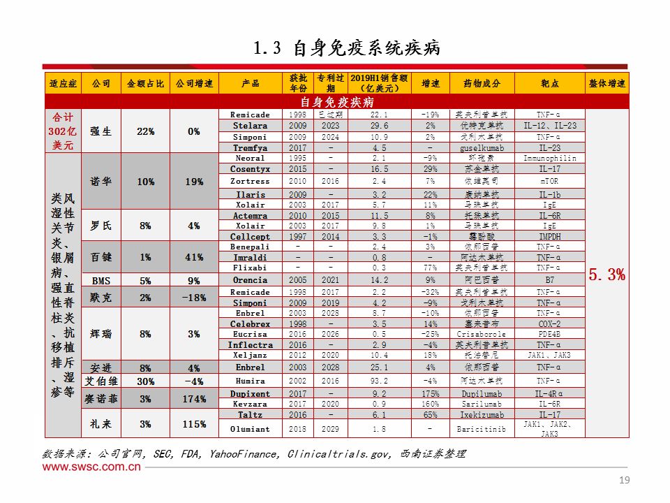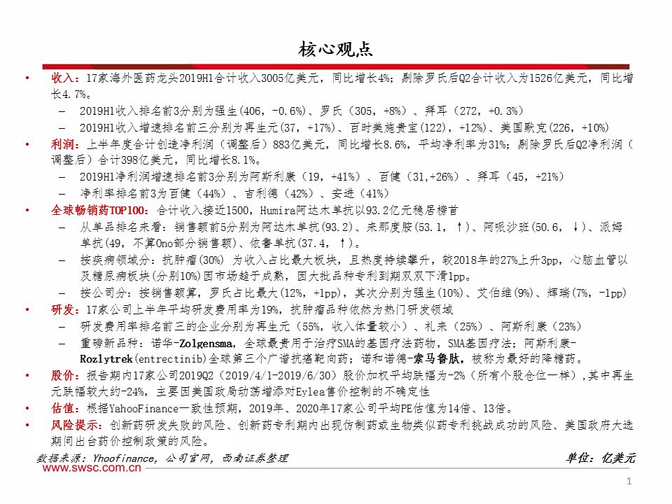 西南证券:17家海外药企1H19总收入3005亿美元,阿达木单抗稳居畅销榜首