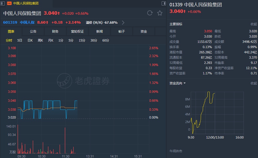 智通财经APP获悉,大和发表报告称,人保(01339)今年上半年新业务价值增长25.6%,为上市寿险商中增长最高,主要因为经纪初年度实收保费(FYP)同比录得44%的强劲增长,及经纪渠道的新业务价值利润率按年扩张4.5个百分点。该行上调对人保的股份目标价,由4.3港元升至4.4港元,维持“买入”评级。