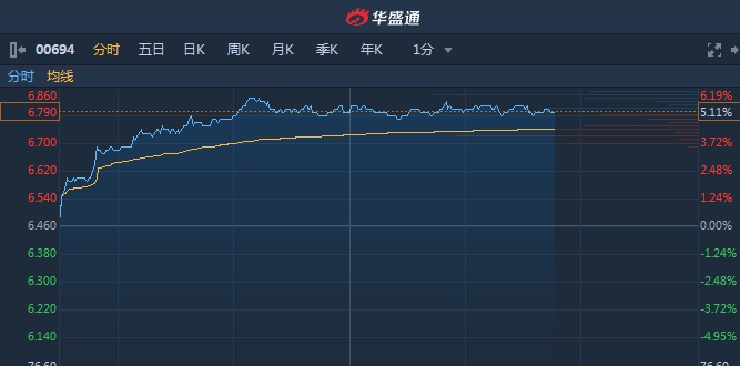 智通财经APP获悉,北京首都机场股份(00694)将于本周四(8月29日)披露中报,获高盛看高至8.1港元,评级升至“买入”。截至14时46分,涨5.11%,报价6.79港元,成交额8646万。