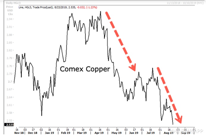 智通财经APP了解到,铜等工业金属今年继续停滞不前,主要基金对全球宏观经济持越来越悲观的看法。上周五,Comex 铜现货价格下跌1.23%至2.535,创下2017年夏季以来的最低水平。