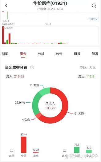 并且,在8月19日等来营收、利润双双大增的业绩后,华检医疗受到了资本一致追捧。据智通财经APP统计,以8月23日为例,华检医疗流入资金占比高达65.74%,公司资金近5日净流入达399.61万港元。此外,在8月20日华检医疗的十大净买入机构中,不乏有中银香港、汇丰银行等知名投行机构。