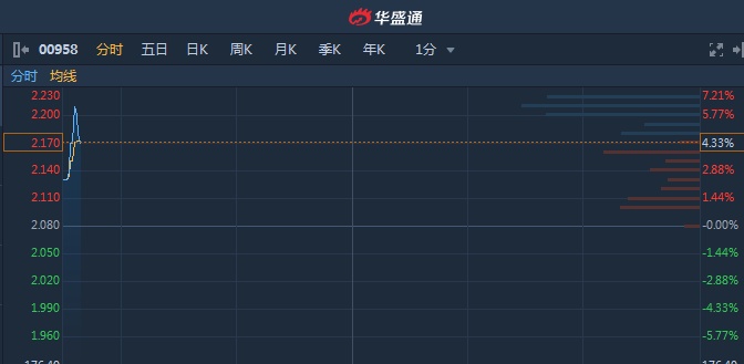 智通财经APP获悉,华能新能源(00958)昨日披露中报,权益股东应占净利同比增31.7%至30.94亿人民币,不派息。截至9时38分,涨4.33%,报价2.17港元,成交额1293万。