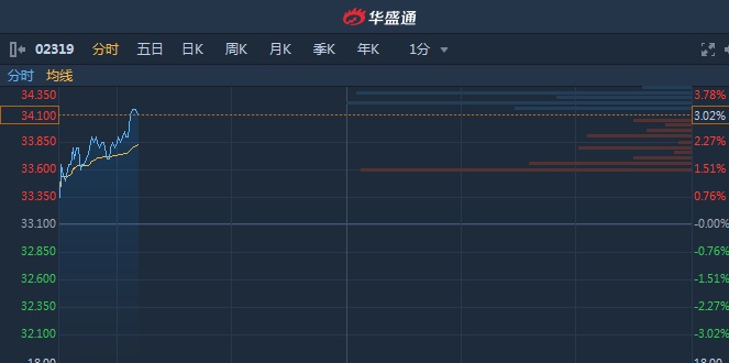 智通财经APP获悉,蒙牛乳业(02319)将于今日发布中期业绩,盘中高见34.15港元,再创历史新高。截至10时10分,涨3.02%,报价34.1港元,成交额8859万。