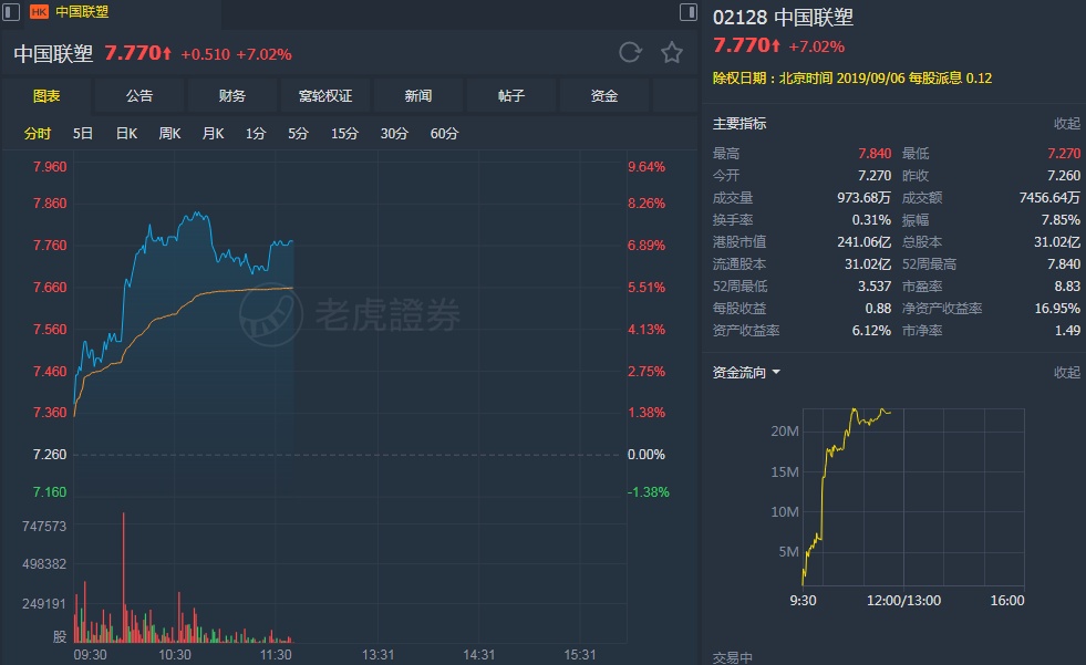 该行表示,受惠7月份项目需求改善,维持公司全年销售增长10%至15%的目标,且对下半年毛利率前景乐观。该行估计,联塑资本开支已达到顶峰,未来派息比率会提升。