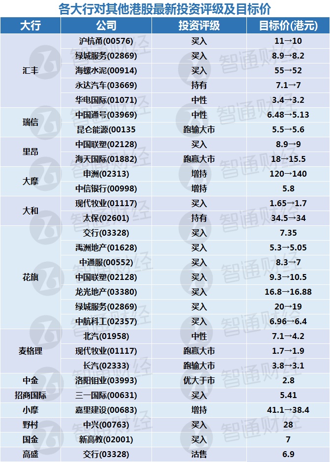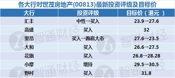 一,各大行对世茂房地产(00813)最新投资评级及目标价: