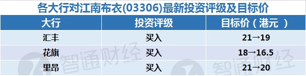二,各大行对江南布衣(03306)最新投资评级及目标价: