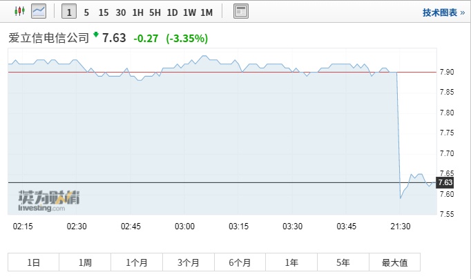 智通财经APP获悉,周三(8月28日)美股低开,截至21:40,爱立信(ERIC.US)跌3.35%,报7.63美元。
