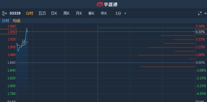 。截至9时50分,涨4.3%,报价1.94港元,成交额2640万。