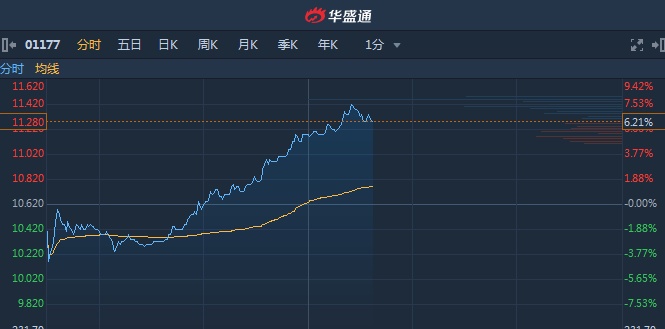 智通财经APP获悉,中生制药(01177)昨日发布中期业绩,归母净利同比增5.8%至14.44亿人民币。今日股价低开高走,午后涨幅扩大逾6%,领涨蓝筹。截至13时36分,涨6.21%,报价11.28港元,成交额8.228亿。
