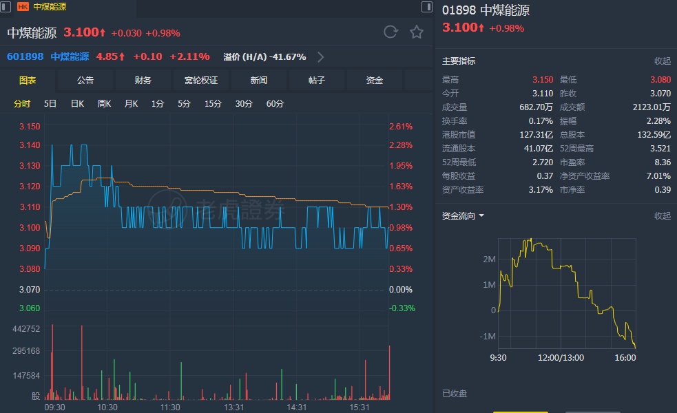 智通财经APP获悉,大摩发表研究报告称,相信中煤能源(01898)的股价将会在未来30天上升,预测发生此概率介乎约70%至80%,这是由于其业绩表现所致。随着中煤在上半年已达到全年盈测的84%,相信股价将会作出正面反应,预计市场重估其短期催化剂,予“与大市同步”评级,目标价3.41港元。