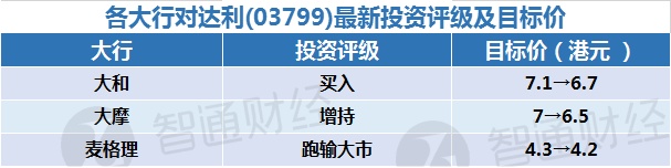 四、各大行对达利(03799)最新投资评级及目标价: