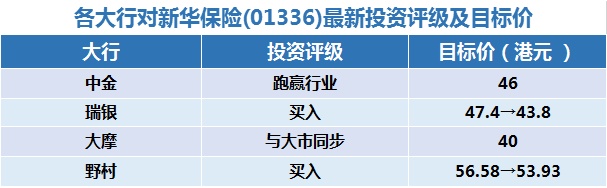 一、各大行对新华保险(01336)最新投资评级及目标价:
