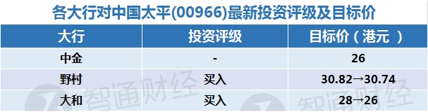 二、各大行对中国太平(00966)最新投资评级及目标价: