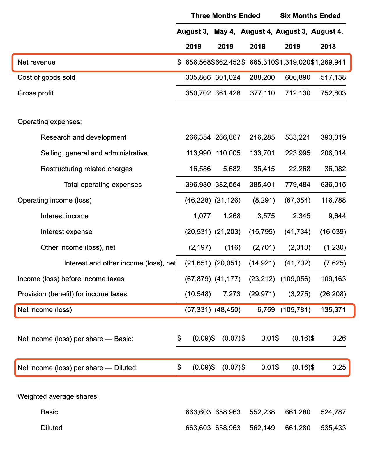 财报中显示,本季度公司总收入6.57亿美元,上一季度为6.62亿美元,去年同期为6.65亿美元,有小幅下跌,但超过分析师预测数据1.05%。净亏损为5733万美元,上一季度净亏损4845万美元,去年同期净收入675.9万美元。按GAAP计算毛利率为53.4%,非GAAP计算下的毛利率为63.3%。按GAAP计算稀释后摊薄每股亏损0.09美元,按非GAAP计算稀释后摊薄每股收益0.16美元, 超出了分析师预测的0.15美元,去年同期为0.28美元。