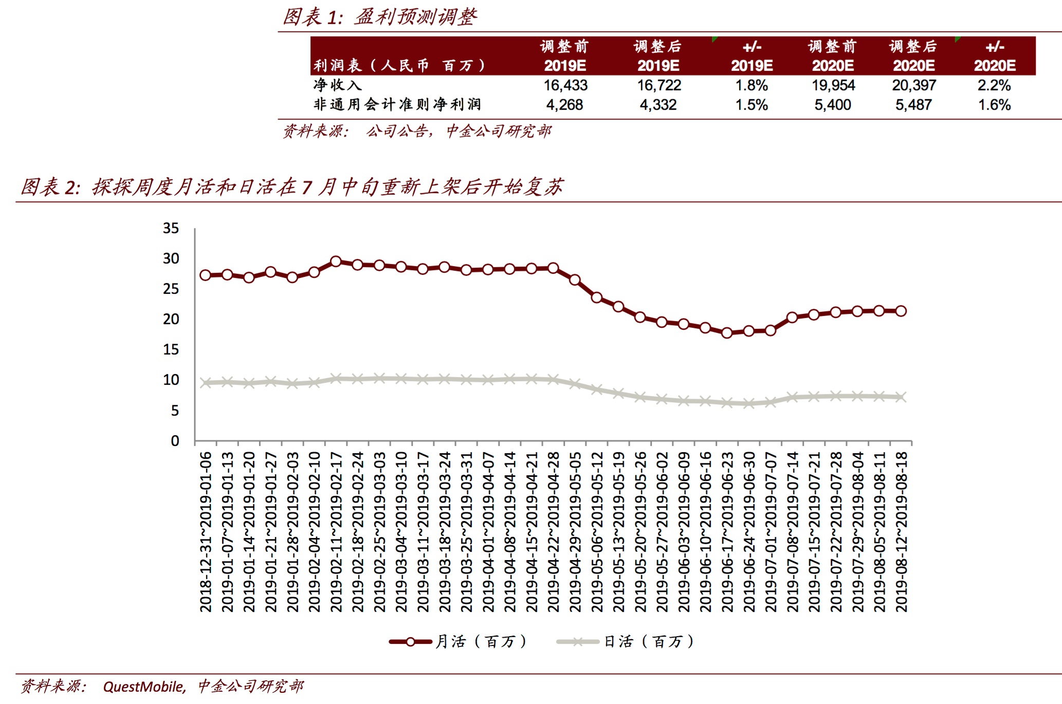 智通财经APP获悉,中金公司于昨日发布研报,将陌陌(MOMO.US)2019和2020年收入预测分别上调1.8%和2.2%,非通用准则净利润预测分别上调1.5%和1.6%。维持其“跑赢行业”评级和45美元目标价(基于分部加总法,对应16.4倍2019年非通用准则市盈率,较当前股价存在 36%的上行空间)。