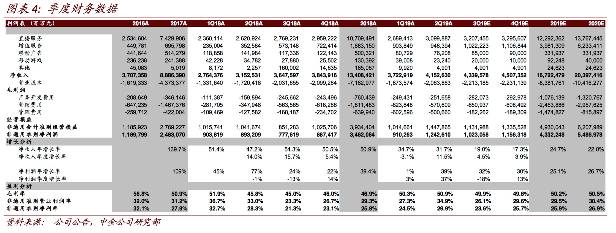 中金指出,尽管受到监管影响,陌陌增值服务收入仍然实现稳健增长,未出现放缓迹象。虽然传统场景(聊天室与快聊)仍然未充分变现,但新玩法(例如抢车位等)正在快速增长。直播业务增长稳健,得益于公司持续的运营投入:线下音乐会、互动礼品和新近推出的贵族体系在刺激头部与腰部用户打赏方面作用显著,未见到显著行业竞争影响。