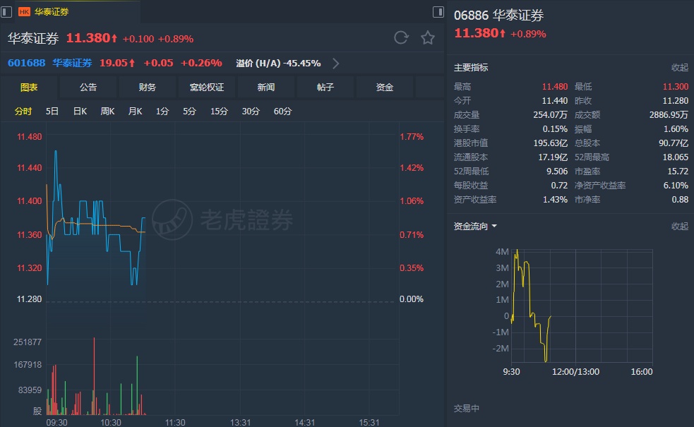 智通财经APP获悉,瑞银发表研究报告称,由于市场的不稳定性,将华泰证券(06886)2019年至2021年盈利预测调低3%至10%,分别至85.36亿元人民币、95.53亿元人民币及105.59亿元人民币,目标价由21.2港元降至19.4港元,但仍维持“买入”评级,因看好公司市场化改革,以及与阿里巴巴的潜在协同效应及强劲的资产管理平台。