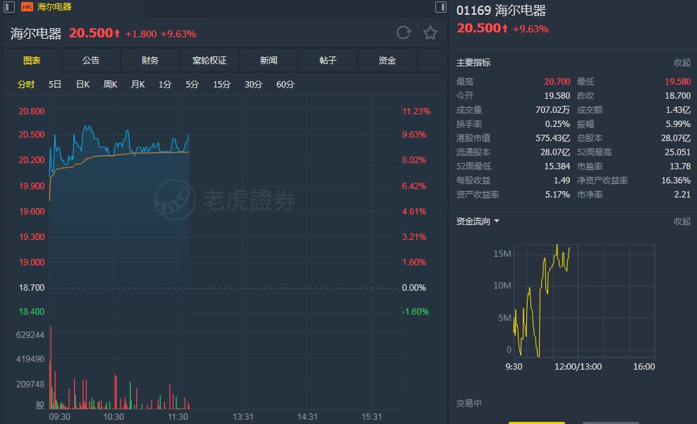 智通财经APP获悉,大摩发表研究报告称,相信海尔电器(01169)股价30日内将上涨,预计发生此概率约60%至70%,予“增持”评级,目标价25港元。