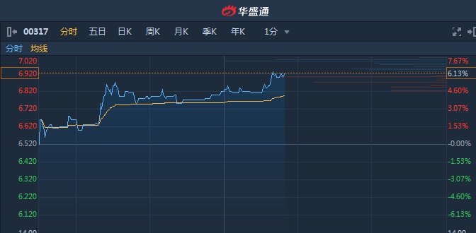 截至13时39分,涨11.67%,报价1.34港元,成交额3735万。