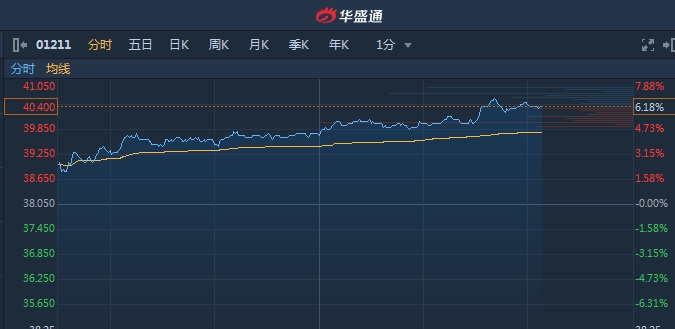 智通财经APP获悉,传比亚迪股份(01211)与奥迪洽谈电池供货协议,消息刺激股价大幅上涨,截至15时07分,涨6.18%,报价40.4港元,成交额4.332亿。