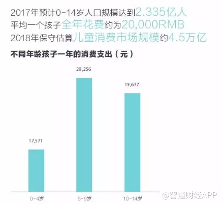 智通财经APP了解到,据《2018中国少儿家庭洞察白皮书》估算,2018年中国儿童消费市场规模已突破4.5万亿元。并且,得益于2016年以来开放的二胎政策,这一市场还在朝着更大的体量高速增长。数据显示,截至2018年,我国0-14岁的儿童数量达到2.5亿人。