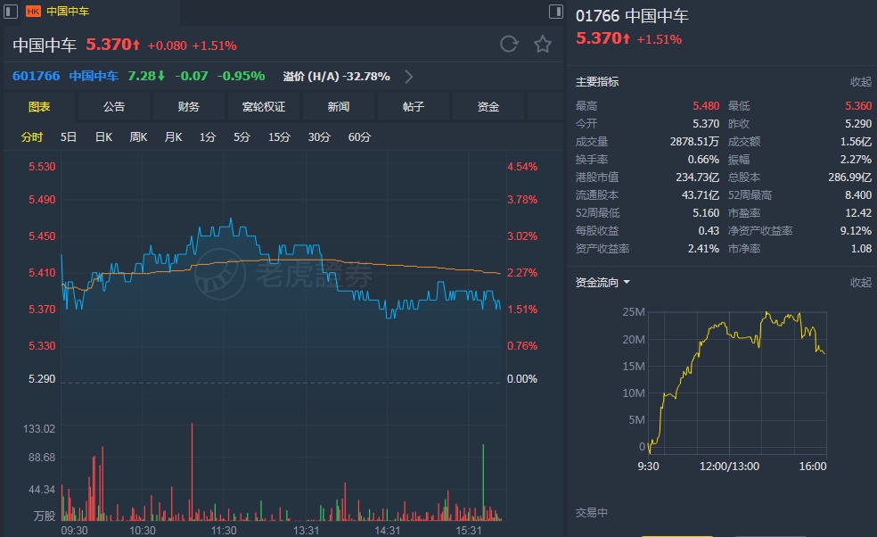 该行指出,中车上半年业绩表现符合预期,盈利同比增长16%至48亿元人民币,期内销售增长11%,主要受惠铁路设备及城市轨道运输业务带动,毛利率跌0.8个百分点至22.5%,主要受铁路业务拖累。期内行政及财务开支比例分别同比下降0.7及0.6个百分点,有助于公司净利润率扩张0.2个百分点至5%。