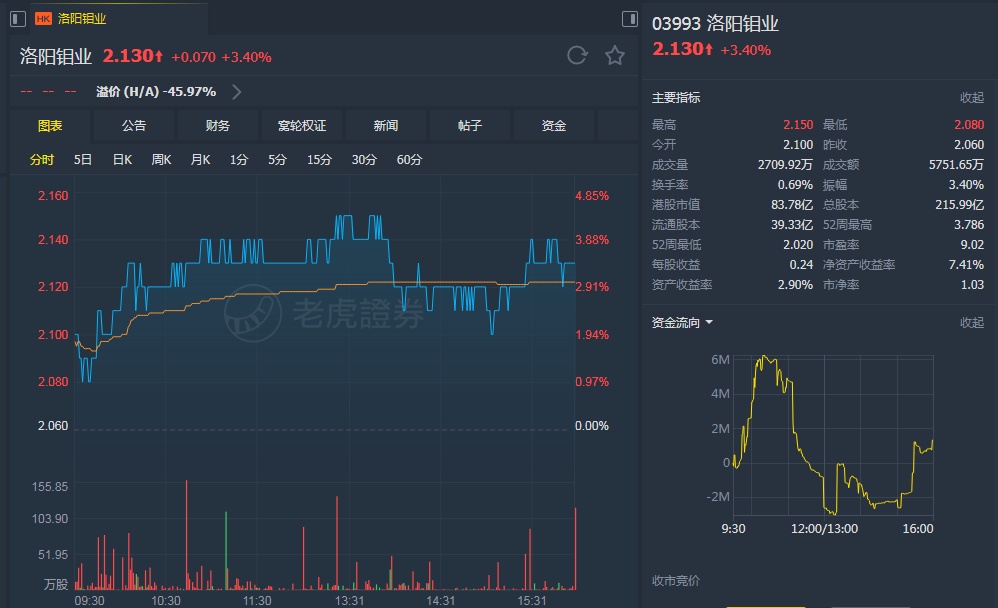 该行指出,洛阳钼业股价调整后,目前股价反映钴价每吨2.56万美元(自2016年以来最低水平),估值相当于预测明年市盈率14倍及市账率0.9倍。该行相信公司可受惠铜价及钴价价格改善,预计钴价每吨升1000美元(升幅3%),会提高洛钼明年纯利3.4%。