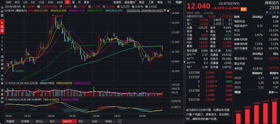 智通财经APP了解到,潍柴动力于8月29日晚间发布中期业绩公告称,公司2019年上半年实现营业收入908.6亿元人民币(单位下同),同比增长10.5%;归属于母公司股东的净利润52.87亿元,同比增长20.4%。受此业绩刺激,公司股价8月30日以+3%涨幅高开,之后一路冲高至+5.71%,最终收盘定格在+3.81%,当天成交量、成交额分别达到1789万股、2.15亿港元,较前一日放大3倍多。