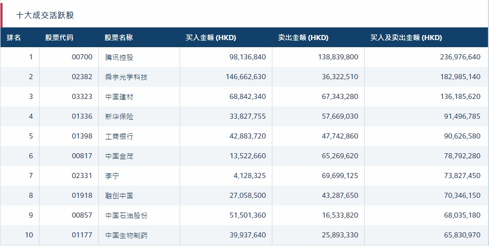 李宁(02331)于本月14日发布中期财报,中期净利暴增近2倍。绩后股价屡创新高,北水资金获利盘涌现,今日净卖出6557万港元。