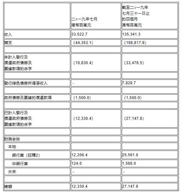 特区政府发言人表示,截至七月份的赤字主要是因为薪俸税及利得税等主要收入均大多在财政年度的后期收取。