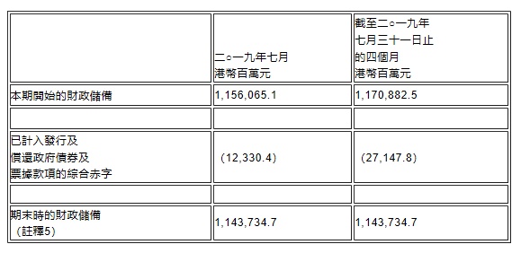 另外,财政储备在2019年7月31日为1.14万亿港元。