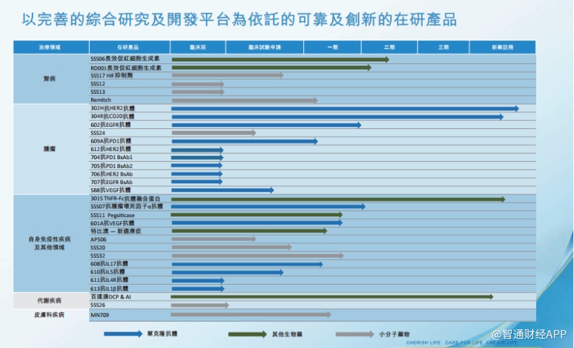 在近年来的几轮收购后,三生制药已拥有50多种药品,主要涵盖肿瘤科、肾科、皮肤科、自身免疫性疾病这四大领域,建立了3大平台:中信国健的单抗平台、浙江万晟的化药平台和三生的EPO+TPO平台。