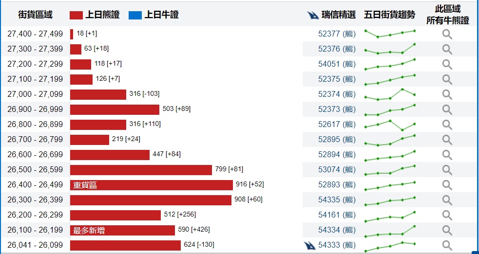 智通财经APP获悉,截至8月31日,恒指最新的牛熊街货比例38:62。瑞信恒指牛熊证街货分布图中的数据显示,熊证街货重货区在26400-26499区间,该区间最新熊证数量为916张,较上一交易日增加52张,最多新增在26100-26199区间。牛证街货重货区在25200-25299区间,该区间最新牛证数量为800张,比上一交易日增加37张;最多新增区间在25300-25328区间。