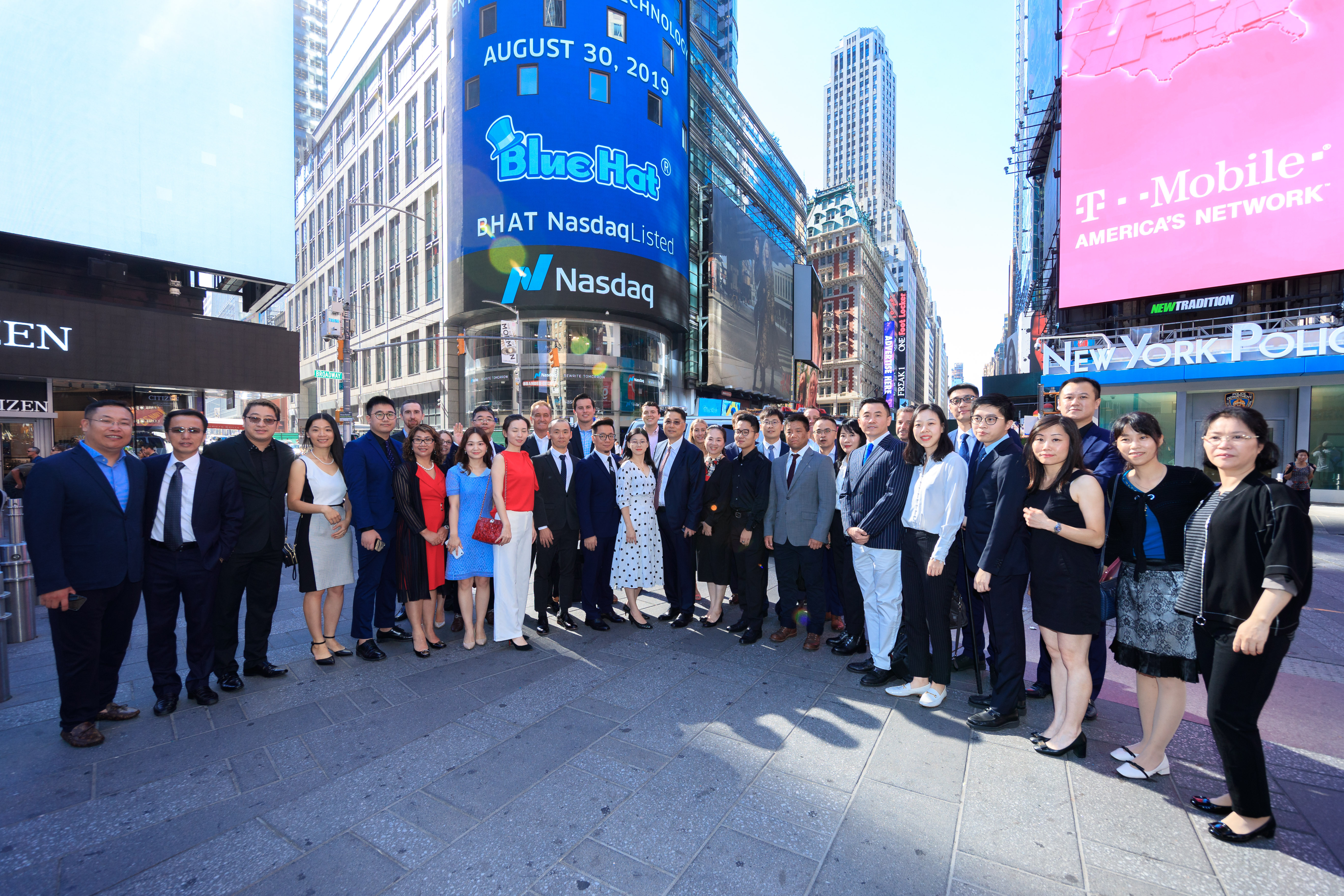 蓝帽子公司CEO陈肖东携公司管理层及董事,以及重要中介机构代表参与了仪式,共同见证蓝帽子登陆纳斯达克这一里程碑事件。